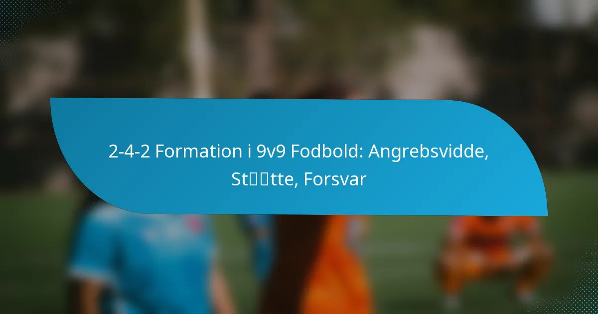 2-4-2 formation i 9v9 fodbold er en taktisk opstilling, der har to forsvarsspillere, fire midtbanespillere og to angribere, hvilket fremmer en balanceret tilgang til både angreb og forsvar. Denne opstilling understreger angrebsvide, hvilket gør det muligt for spillerne at strække modstanderens forsvar og skabe plads til angriberne. Derudover fremmer formationen stærk støtte blandt spillerne gennem strategisk positionering og effektiv kommunikation, hvilket muliggør problemfrie overgange mellem offensive og defensive roller.