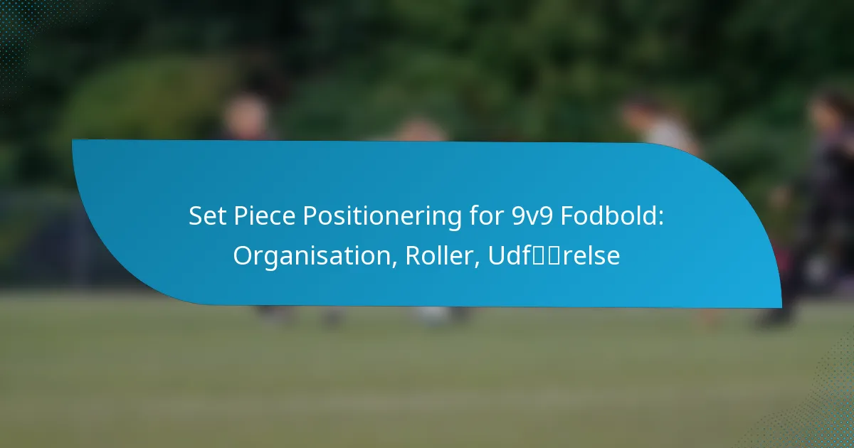 Positionering af dødbolde i 9v9 fodbold er afgørende for at maksimere scoringsmuligheder og sikre defensiv styrke. Holdene skal etablere klare roller og formationer, med fokus på spillerpositionering og bevægelse for at forbedre deres effektivitet i disse afgørende øjeblikke. Effektiv udførelse afhænger af kommunikation og koordinering, hvilket gør det muligt for holdene at udnytte frispark og hjørnespark med præcision.